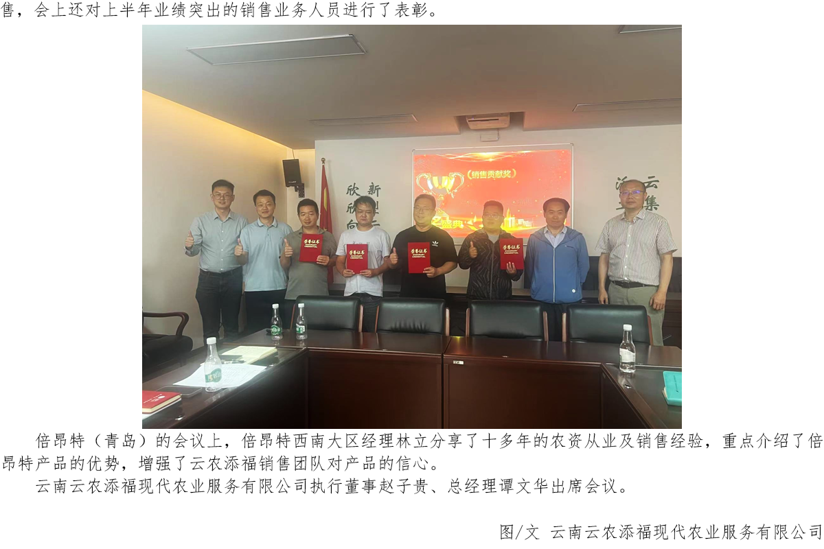 云南云農(nóng)添?,F(xiàn)代農(nóng)業(yè)服務(wù)有限公司召開(kāi)上半年銷(xiāo)售工作總結(jié)會(huì)議