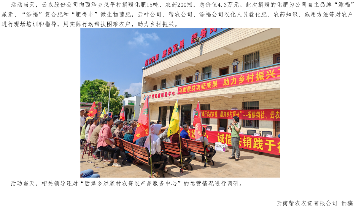 云南農業(yè)生產資料股份有限公司到宣威市西澤鄉(xiāng)戈平村開展“保春耕、送化肥、助力鄉(xiāng)村振興”定點幫扶活動