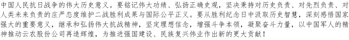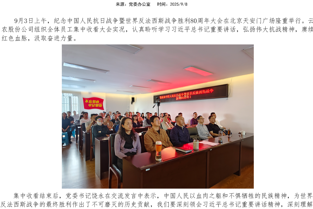 云農(nóng)股份公司組織全體員工集中收看紀(jì)念中國人民抗日戰(zhàn)爭(zhēng)暨世界反法西斯戰(zhàn)爭(zhēng)勝利80周年大會(huì)