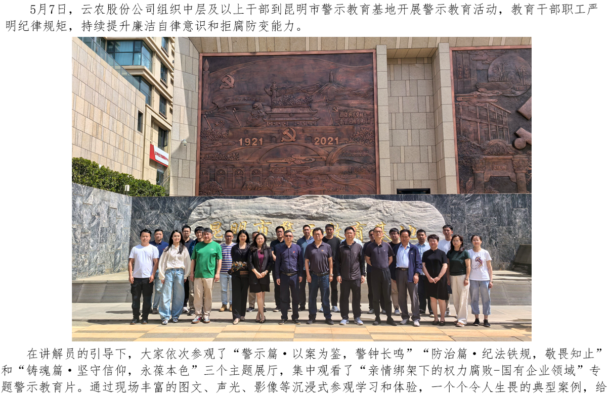 云農(nóng)股份公司組織中層及以上干部到昆明市警示教育基地開(kāi)展警示教育活動(dòng)